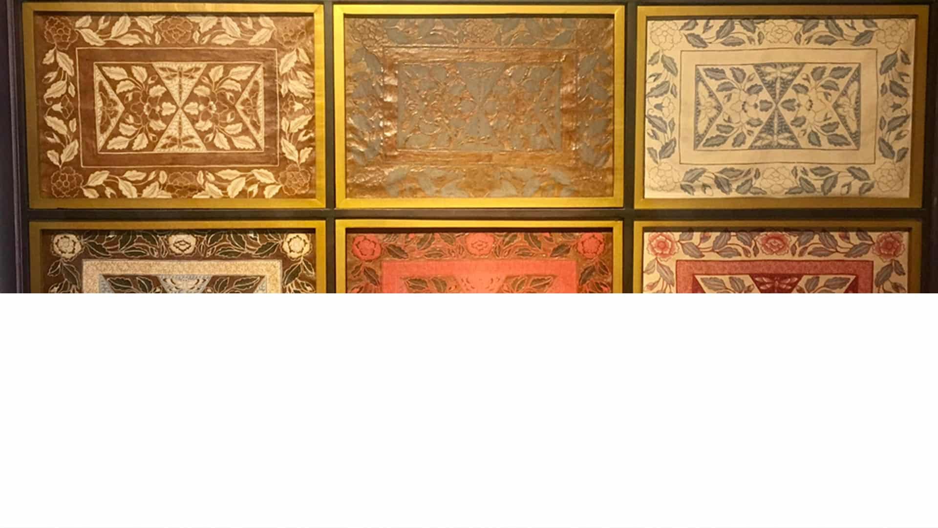 • Imprimer les cadres du motif sur les deux pages du tissu avec un tampon spécial